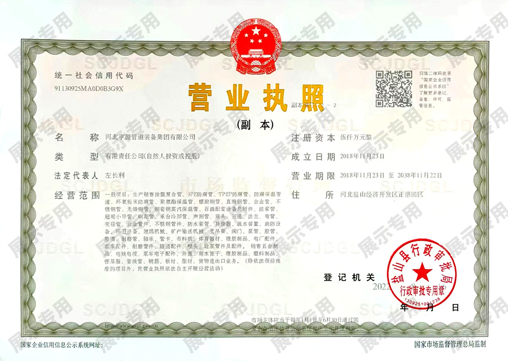 河北亨源管道装备集团有限公司是钢管以及管道防腐业务的国家级高新技术公司,公司注册资金5000万元,位于中国管道生产基地-河北盐山县正港工业园区,近靠京沪高速公路、荣乌高速公路、黄石高速公路30公里,高铁沧州西站40公里,天津国际机场、济南遥墙机场150公里,为客户来访及业务发展提供了便利的交通条件。